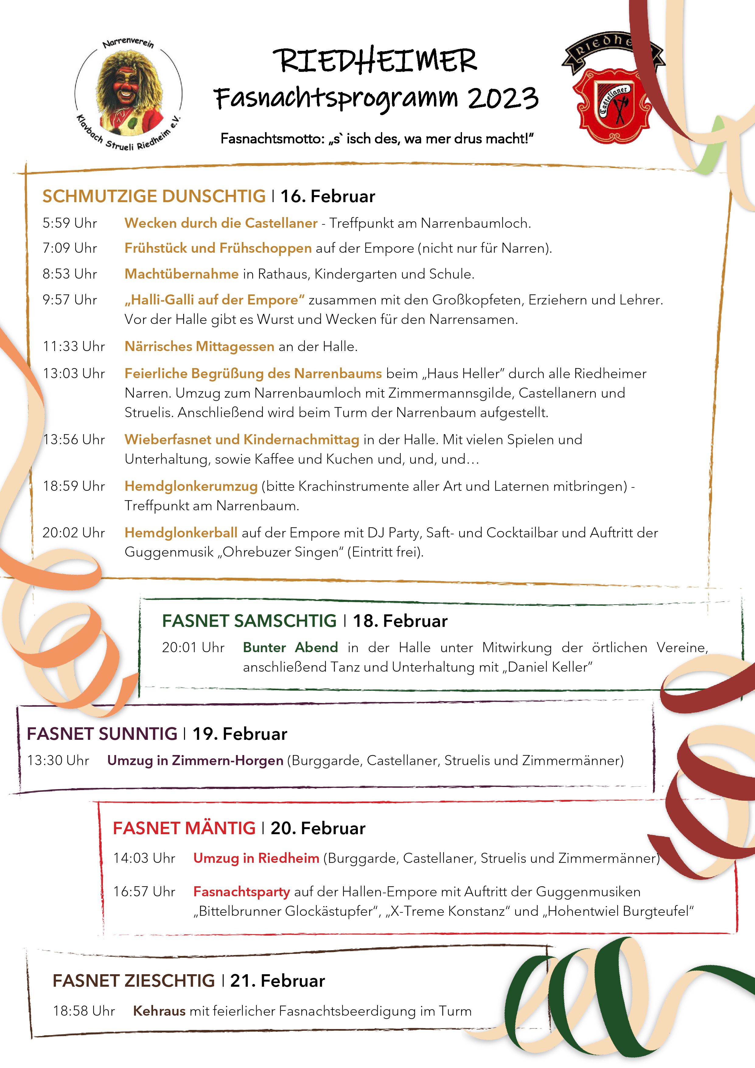 Donnerstag, 12. Februar - Dienstag, 17. Februar 2026: Fasnacht Riedheim